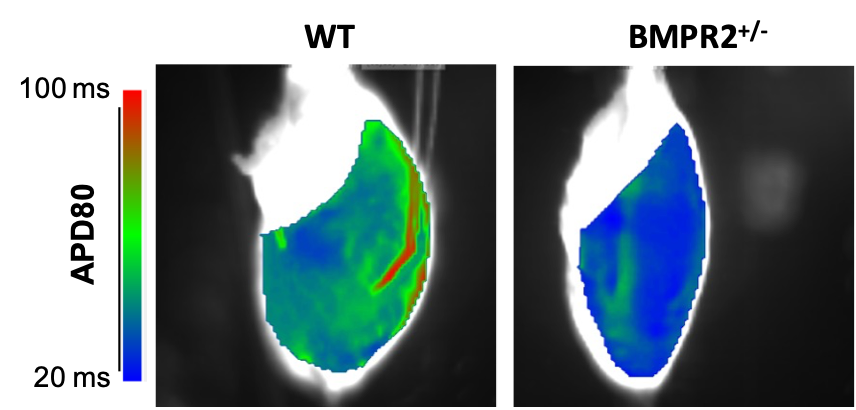 - Etude des altérations cardiaques droites chez les animaux transgéniques adultes avec une mutation BMPR2 (Bone Morphogenetic Protein Receptor 2) (collaboration avec l’équipe 3 de l’unité)en conditions physiologiques (normoxiques – Figure 1) ou pathologiques (HTP induite par une hypoxie chronique).