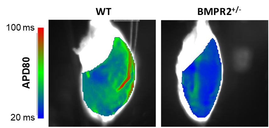 - Investigation of right heart alterations in adult transgenic animals carrying a BMPR2 (Bone Morphogenetic Protein Receptor 2) mutation, under both physiological conditions (normoxia – see Figure 1) and pathological conditions (PH induced by chronic hypoxia). Collaboration with Team 3 of the unit.